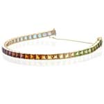 The primary light source for the necklace shown, was positioned on the side of the table, facing downward toward the jewelry and table surface. A single soft box was used to soften the primary light source and prevent glare and hotspots on the surface of the crystals. We used one single 20" x 20" Kuhl Lite 120 soft box for this. This light holds four 30 Watt The large acrylic sheet used, has a protective sheet on both sides; we highly recommend leaving the second side covered with the protective sheeting until you intend to use it. The acrylic does scratch easily, so dragging jewelry across the surface is to be avoided when at all possible. Glass is more durable and can be used instead of acrylic; however it is more hazardous to work with due to the fragile nature of glass. This technique works especially well for jewelry that lies flat like the necklace shown. Because this is an open set and the black acrylic is highly reflective, it will take some patience to line things up just right so the acrylic is not reflecting things you do not wish to see in your image. If you have the opportunity to work in an area with high ceilings, that helps to reduce the overhead reflections a bit. Be sure to keep looking through the camera lens after repositioning any part of the setup. Unwanted reflections have a way of sneaking in just when you think you're all set. Be sure that all of your lights match in color or you will not be happy with the results. NEVER mix different light source bulb colors. I use all 5000K daylight balanced bulbs for all of my example images. |